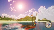 The Boat is an activity available in Tchia. It is unlocked at the end of Chapter II - Tre's Camp as a gift from Tre. The Boat is used to traverse water in and around each island. The Boat is controlled by interacting with the sail and helm. By interacting with the sail, Tchia can increase or decrease the Boat's speed. The helm is then used to steer the boat. As such, Tchia must interact with the sail first and then run to the helm in order to control the Boat effectively. Should the boat become stuck on land, Tchia can jump off it and push it back in the water. To prevent the boat from drifting away after leaving you, Tchia can also drop the boats anchor. While Tchia herself is not marked on the Map unless a Orientation Sign is interacted with, the Boat's location will always be marked. This can be useful when navigating around the environment.